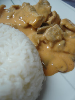 Já o strogonoff ficou um bocado á quem das minhas expectativas... E eu que não sou nada teimosa... teimei que tinha que fazer um strogonoff, para tirar as teimas... e cá está a prova do "Crime".. E ... Gostei, ficou aprovadíssimo, pelo marido que costuma comer este prato com alguma regularidade e por mim...